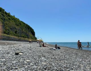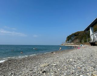 До моря пешком около 20 минут неспешным шагом. Дорога к морю по ровной, тенистой улица Амурская. Пляжная полоса широкая и малолюдная, галька средне-мелкая, вход в море пологий.