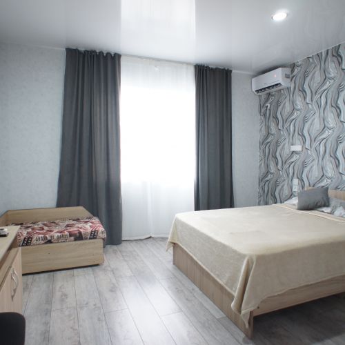 Номера расположены в трехэтажном коттедже на 2 и 3 этажах. В номерах есть вне необходимое для комфортного проживания. В каждом номере удобная мебель, ванная комната с бойлером и душем, телевизор ЖК со Smart TV, мини-холодильник, кондиционер. Для удобства гостей предусмотрены полотенца для бассейна.